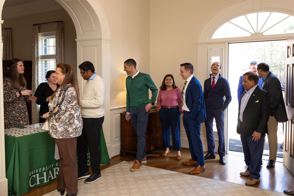 Dozens gathered for an evening of celebration at the Bissell House at the University of North Carolina at Charlotte for the Leaders in Research reception–a time to honor both the recipient of Charlotte’s Distinguished Research Award (formerly the First Citizens Bank Scholars Medal) and the third class of Charlotte’s Million Dollar Research Circle.