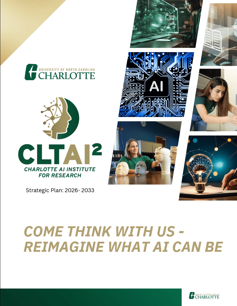 The Charlotte AI Institute for Research (CLTAI2) is pleased to share its Strategic Plan 2026-2033, outlining a clear path for advancing AI research and innovation at UNC Charlotte. The Institute is already accelerating this vision through ThinkAI Meetups, ethical policy development, and high-impact NSF-funded center awards. By bridging interdisciplinary discovery and collaboration across campus with real-world applications through strategic external partnerships, CLTAI2 ensures the University remains at the center of the national AI landscape.